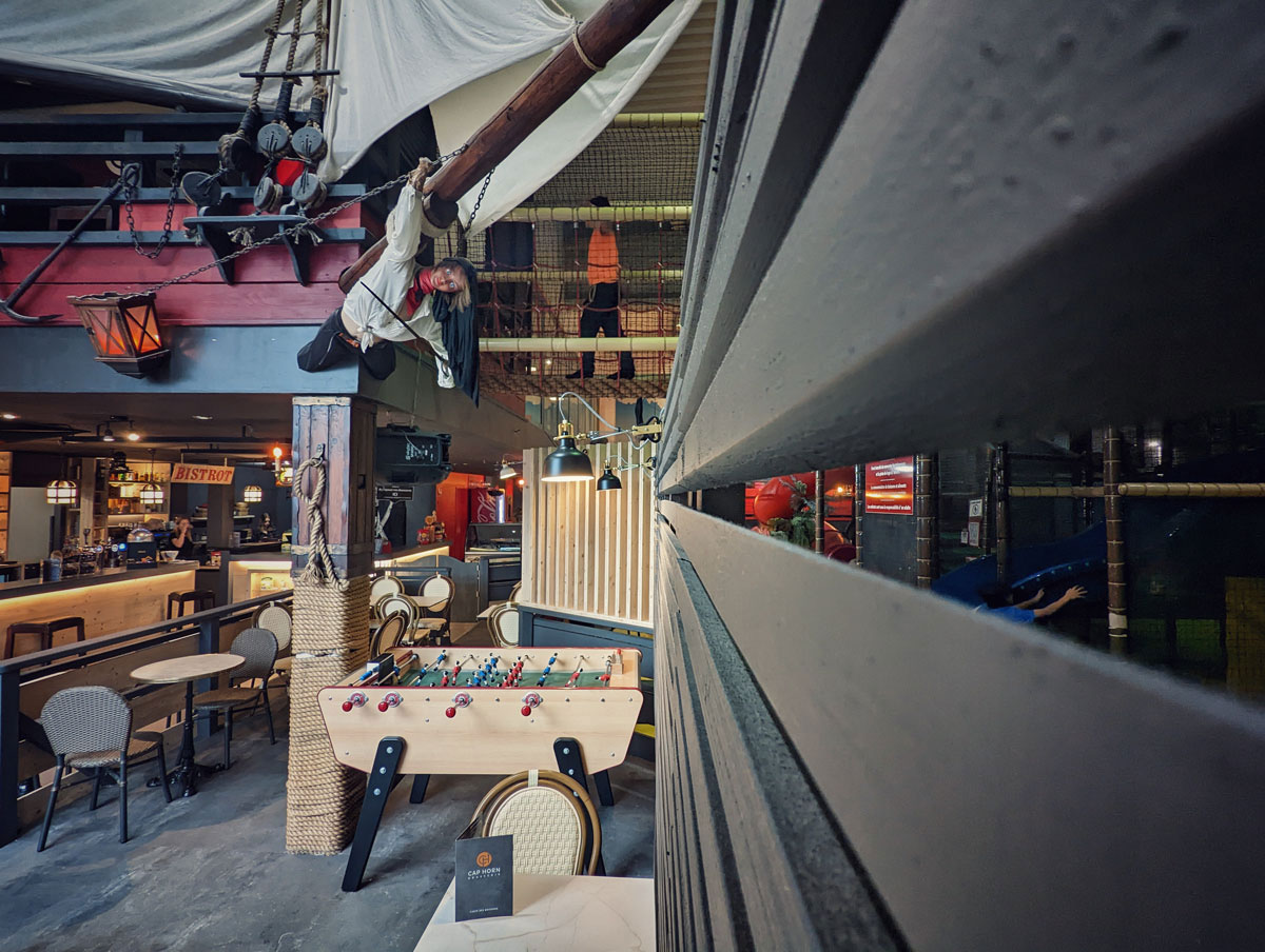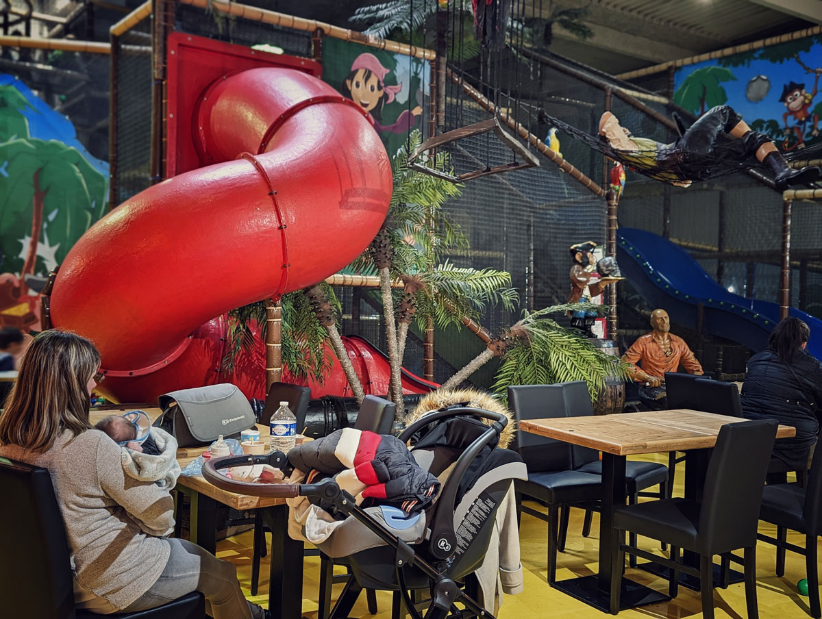 Pour tes parents, c'est un havre de paix ! Ils pourront profiter de notre espace de restauration au rez-de-chaussée, offrant crêpes, gaufres, frites, glaces, et plus encore. À l'étage, la mezzanine abrite une brasserie proposant un large éventail de plats. Ils pourront aussi se détendre dans notre salon chaleureux tout en gardant un œil sur toi grâce aux baies vitrées donnant sur la plaine de jeux.